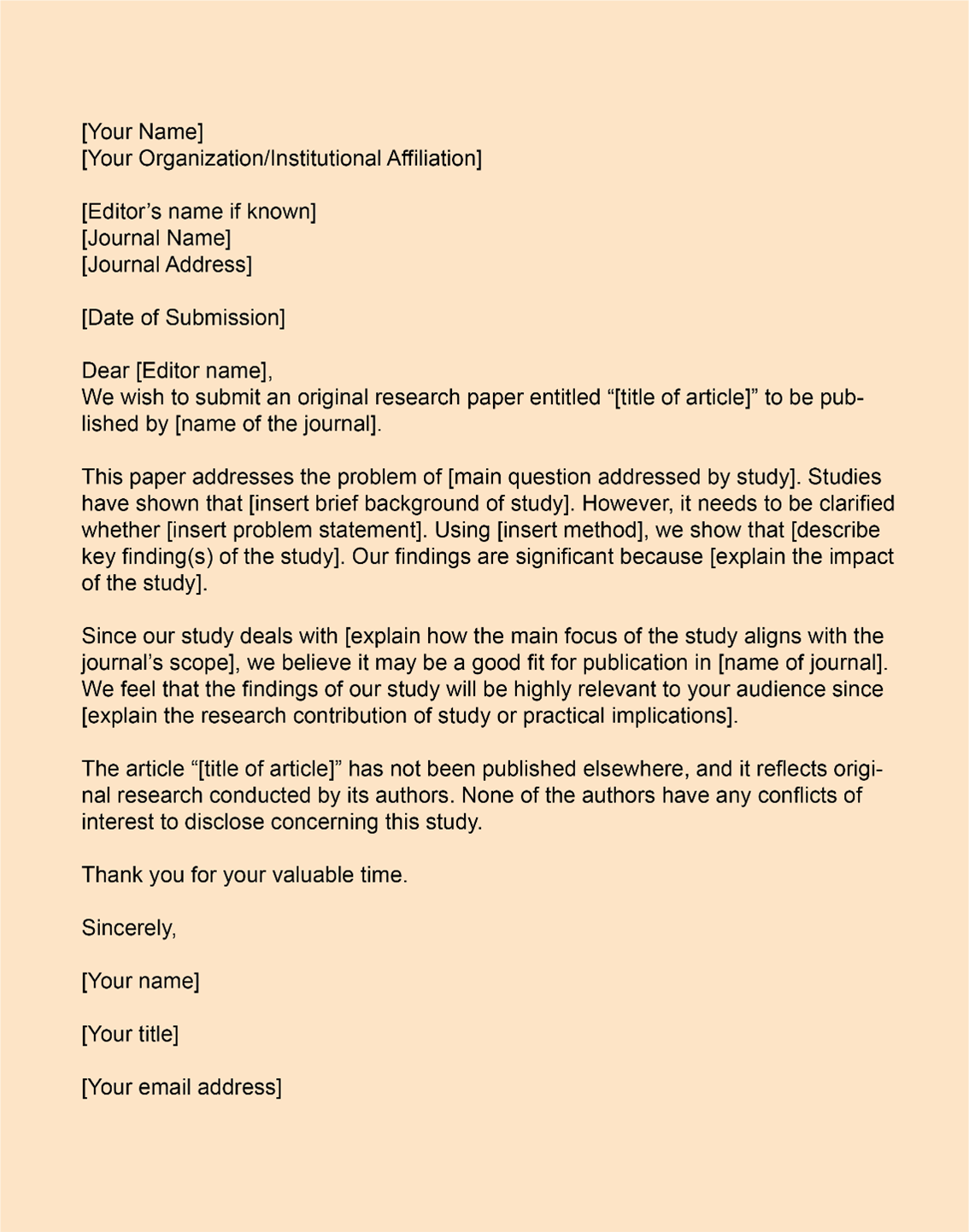 عنوان واضح و مشخص مقاله خود را در کاورلتر ارائه دهید و همچنین، نوع مقاله خود را (مقاله اصیل، مروری، یا نوع دیگری از مقاله) مشخص کنید. در صورتی که دستورالعملهای مجله (راهنمای نویسندگان) توصیه کرده باشند، بهتر است فهرست کامل نویسندگان مقاله را نیز درج کنید.